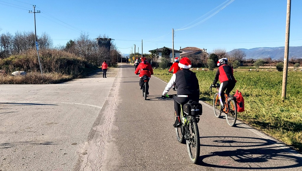 DISPUTATA DOMENICA 14/12, FRA LE PROVINCE DI TREVISO E VICENZA, LA "GRAVEL DEI BABBI NATALE", APPUNTAMENTO EXTRA-PROGRAMMA PER CHIUDERE IN FESTA LA STAGIONE BIKE 2025. BELLA PEDALATA NON AGONISTICA DI CIRCA 60 KM, FRA PEDEMONTANA, CAMPAGNE E FIUME BRENTA, IN COSTUME NATALIZIO. 1 RISTORO LUNGO IL PERCORSO, PASTA & FAGIOLI CON LOTTERIA ALL'ARRIVO. |