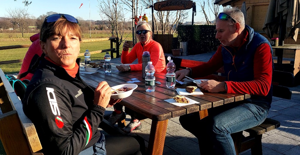 Dopo la pedalata, un bel piattone di pasta e fagioli e la lotteria (con i Rinco mattatori, che hanno vinto più di un premio!), poi tutti in auto per il rientro in Trentino!