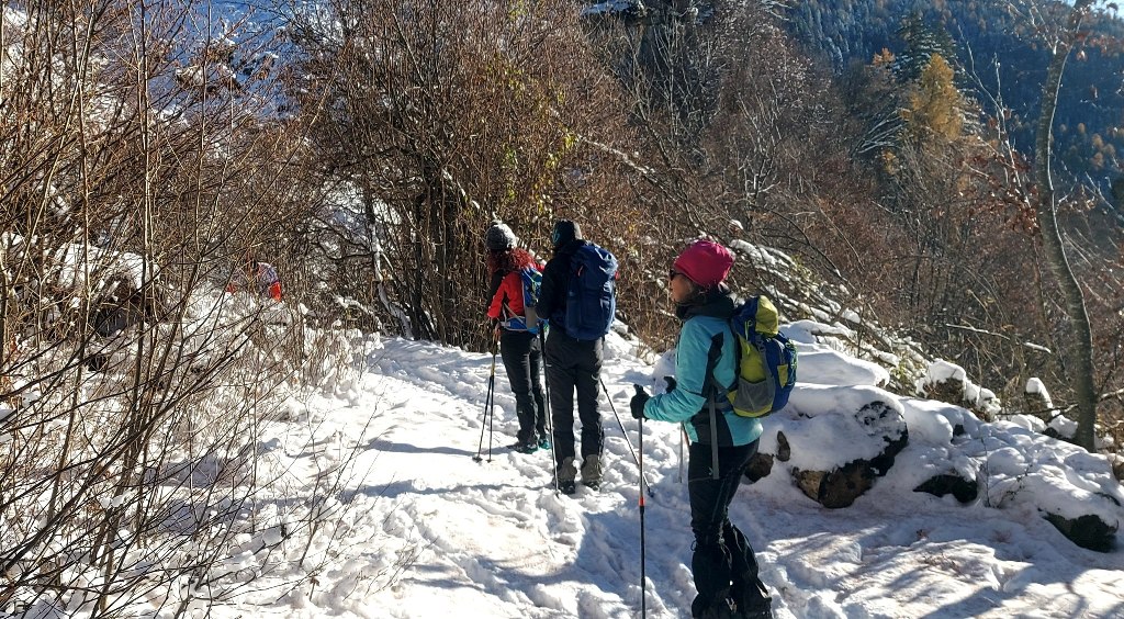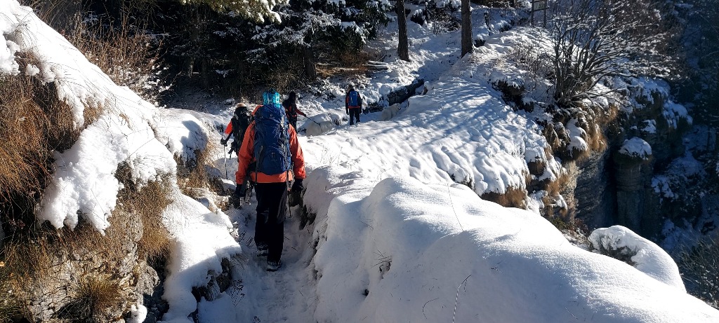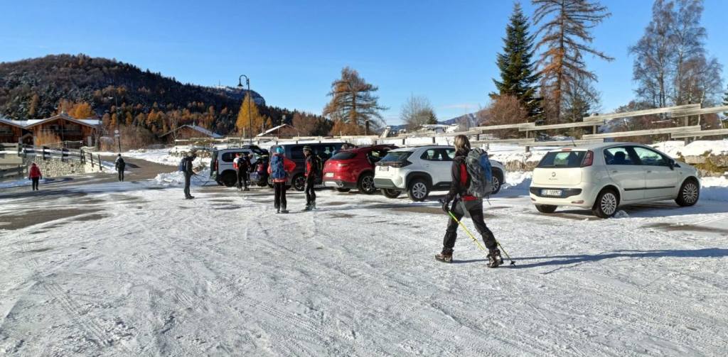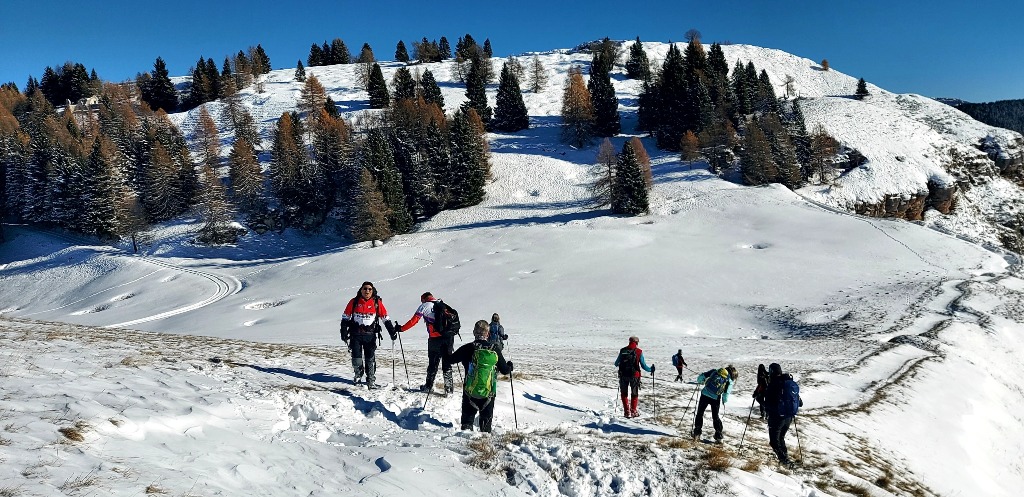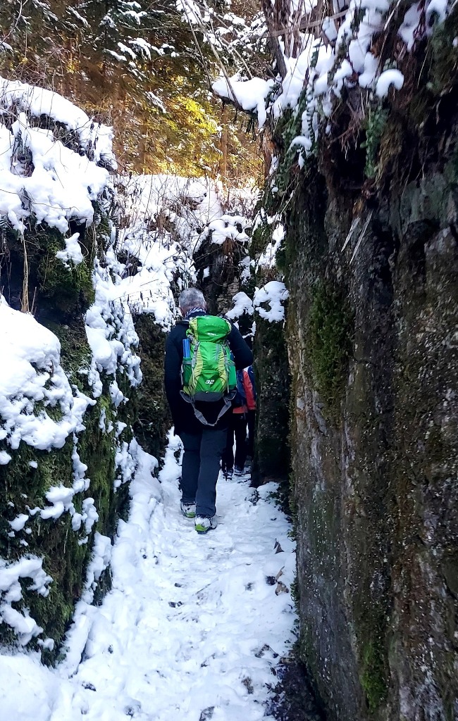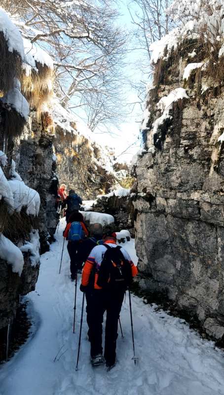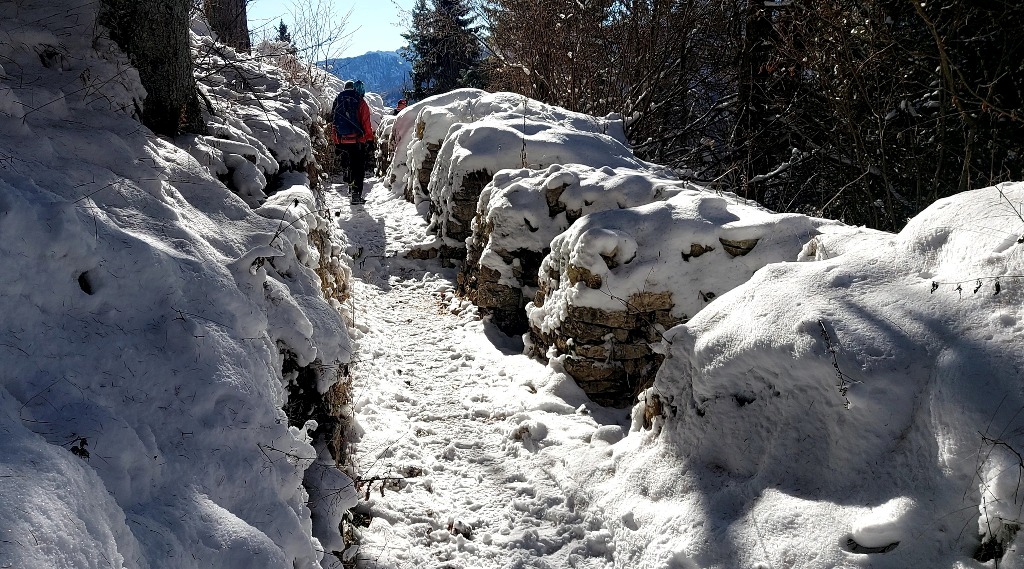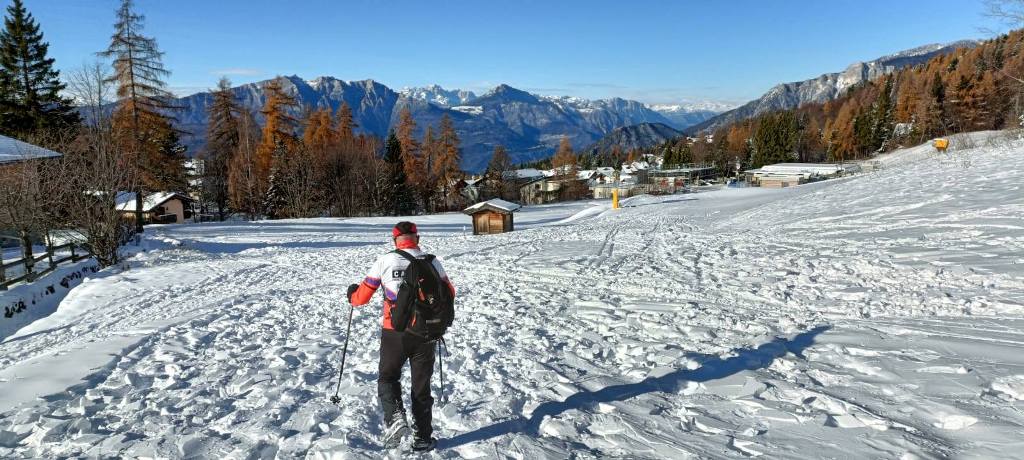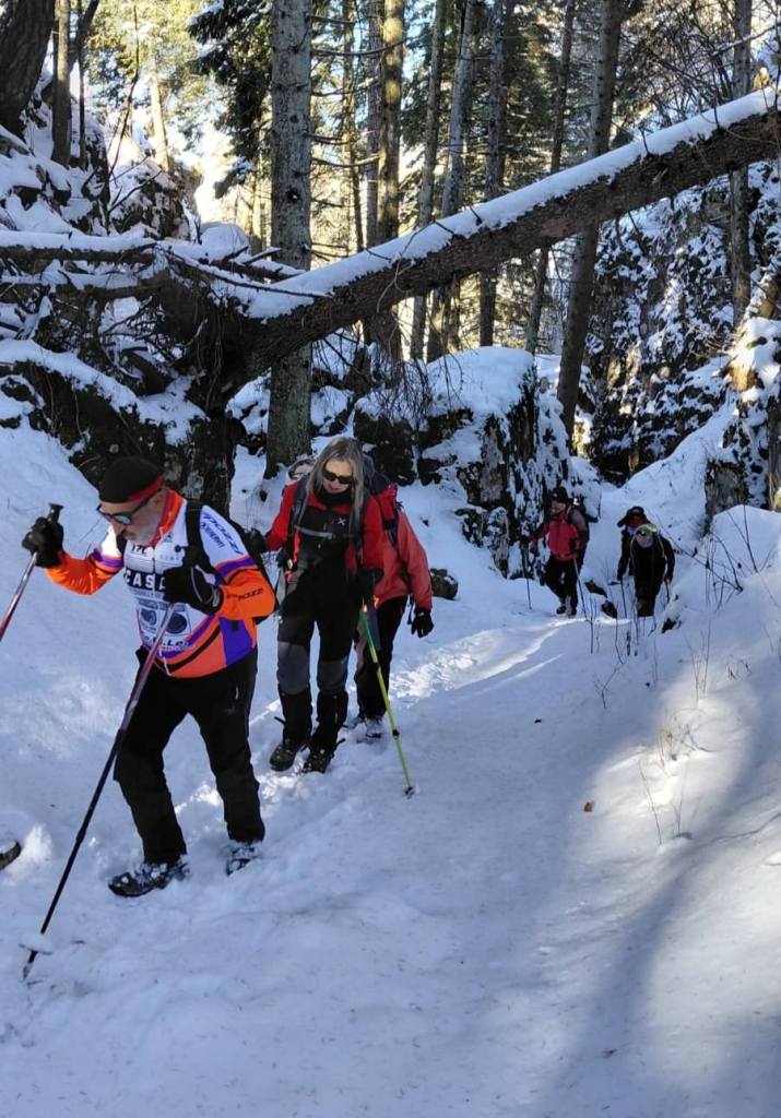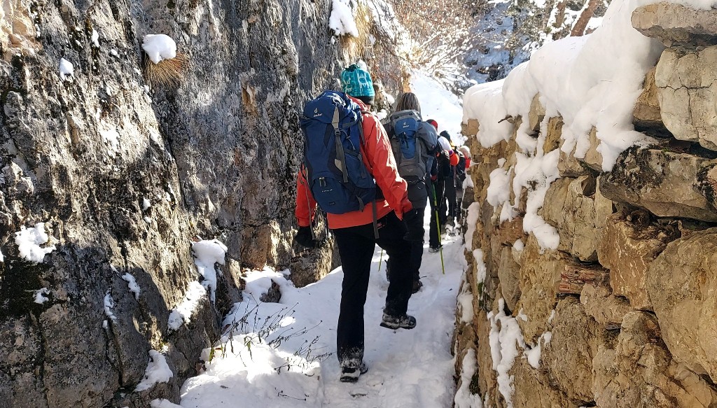 23/11/2025. E' stata disputata oggi sull'Altopiano di Folgaria la 9ª ed ultima uscita del Programma Trekking 2025. L'itinerario previsto era un anello abbastanza breve (9 km) caratterizzato dal passaggio nel sito storico della Forra del Lupo, una lunga sequenza di trincee austroungariche affacciate sulla Val Terragnolo, alcune delle quali ricavate dentro stretti passaggi naturali fra le rocce. Nelle previsioni doveva essere un'uscita caratterizzata dai mille colori del bosco, in veste autunnale, ma la neve caduta nei giorni precedenti ha letteralmente trasformato il paesaggio, cosicchè - oggi - si è celebrato l'ideale passaggio di testimone fra la stagione estivo-autunnale (che se ne va) e quella invernale, che comincia sotto i migliori auspici !.