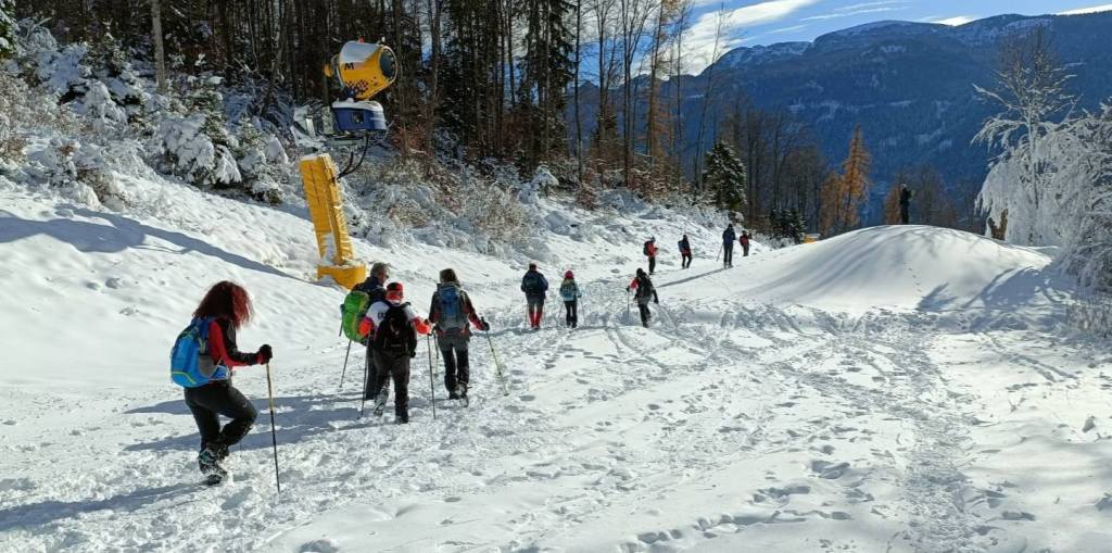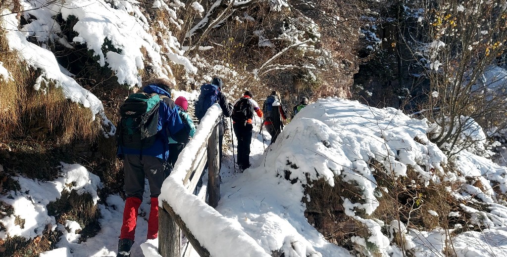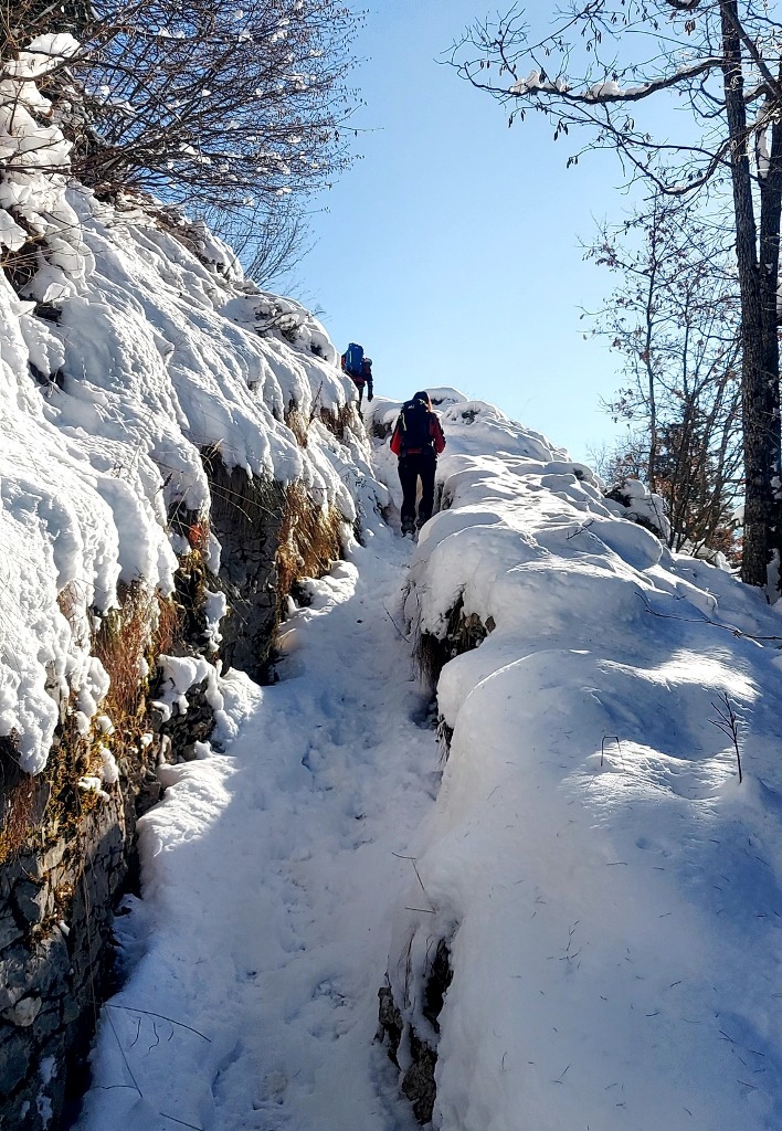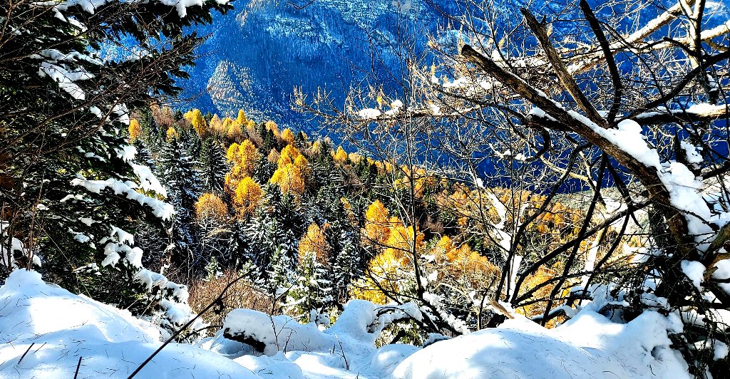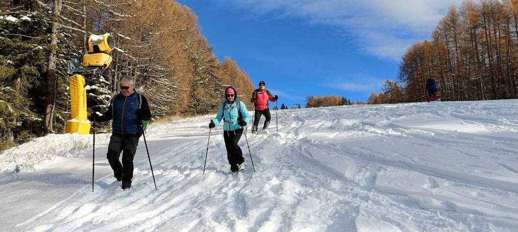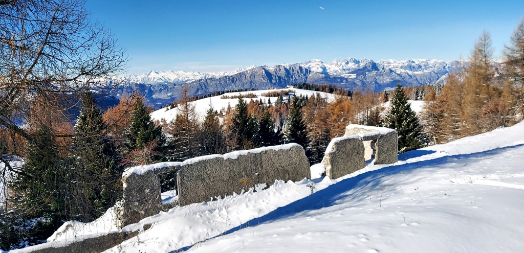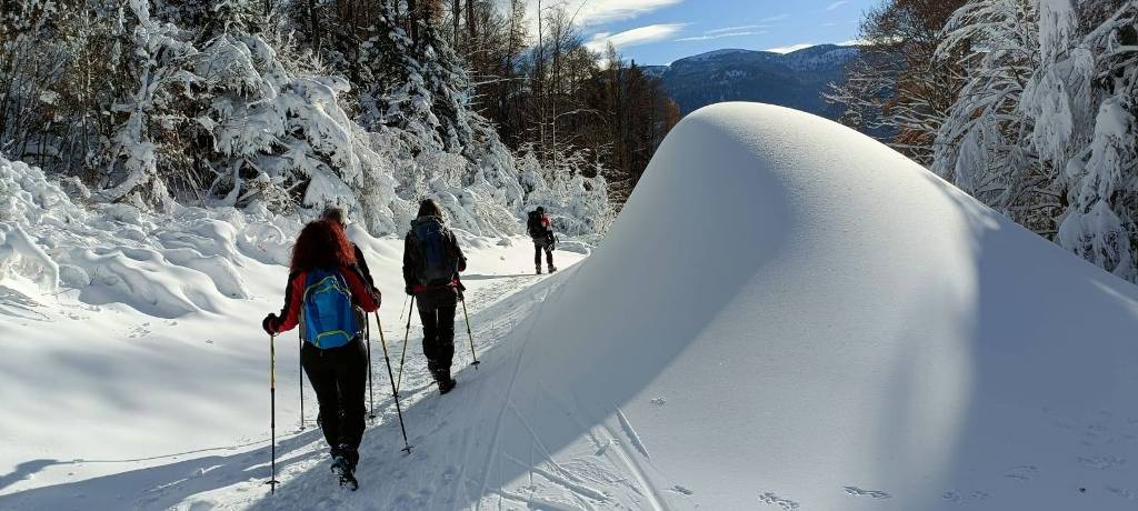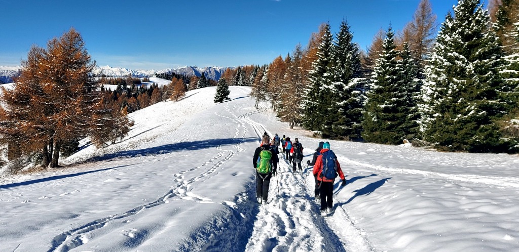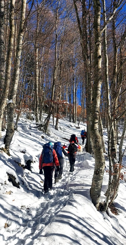 23/11/2025. E' stata disputata oggi sull'Altopiano di Folgaria la 9ª ed ultima uscita del Programma Trekking 2025. L'itinerario previsto era un anello abbastanza breve (9 km) caratterizzato dal passaggio nel sito storico della Forra del Lupo, una lunga sequenza di trincee austroungariche affacciate sulla Val Terragnolo, alcune delle quali ricavate dentro stretti passaggi naturali fra le rocce. Nelle previsioni doveva essere un'uscita caratterizzata dai mille colori del bosco, in veste autunnale, ma la neve caduta nei giorni precedenti ha letteralmente trasformato il paesaggio, cosicchè - oggi - si è celebrato l'ideale passaggio di testimone fra la stagione estivo-autunnale (che se ne va) e quella invernale, che comincia sotto i migliori auspici !.