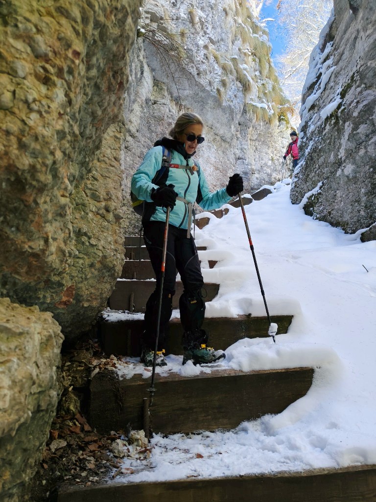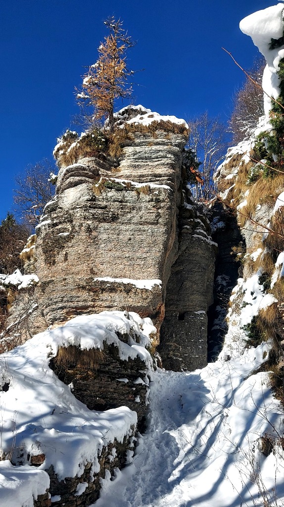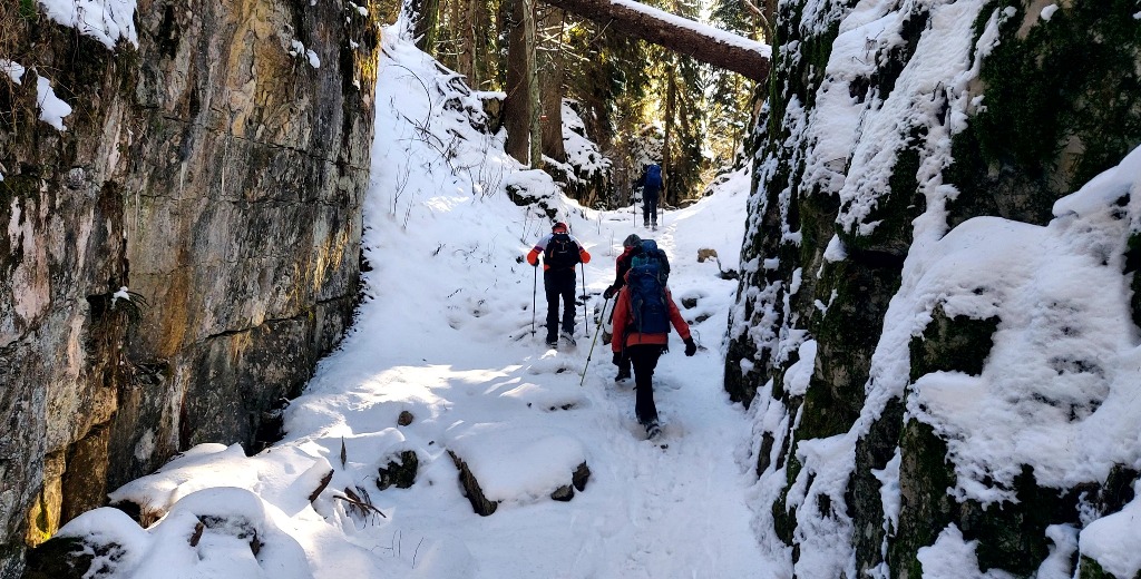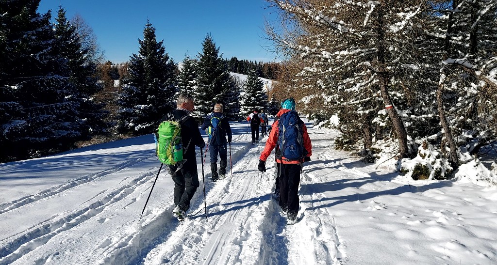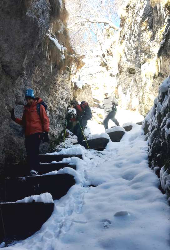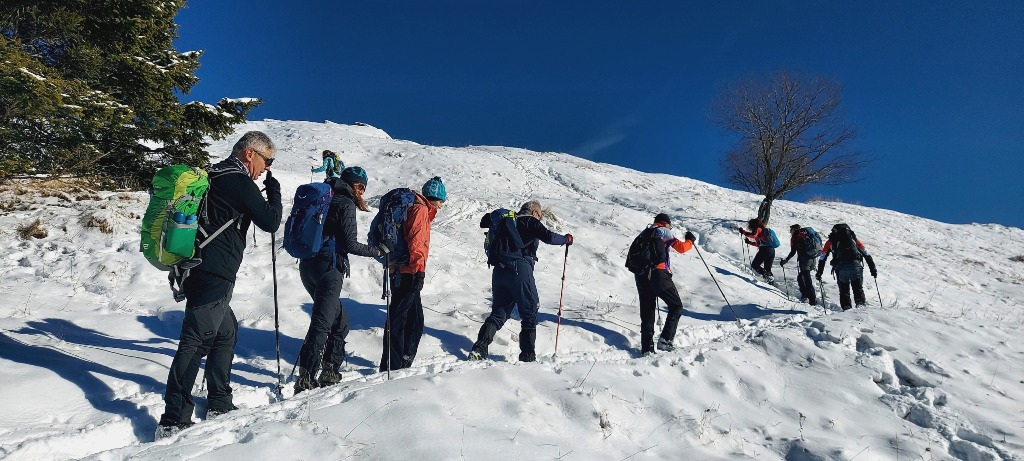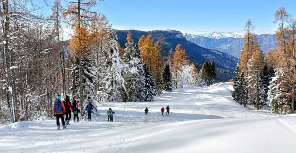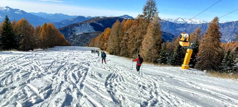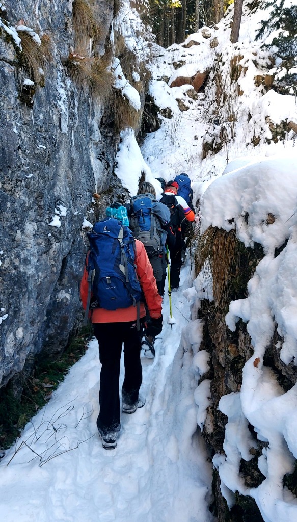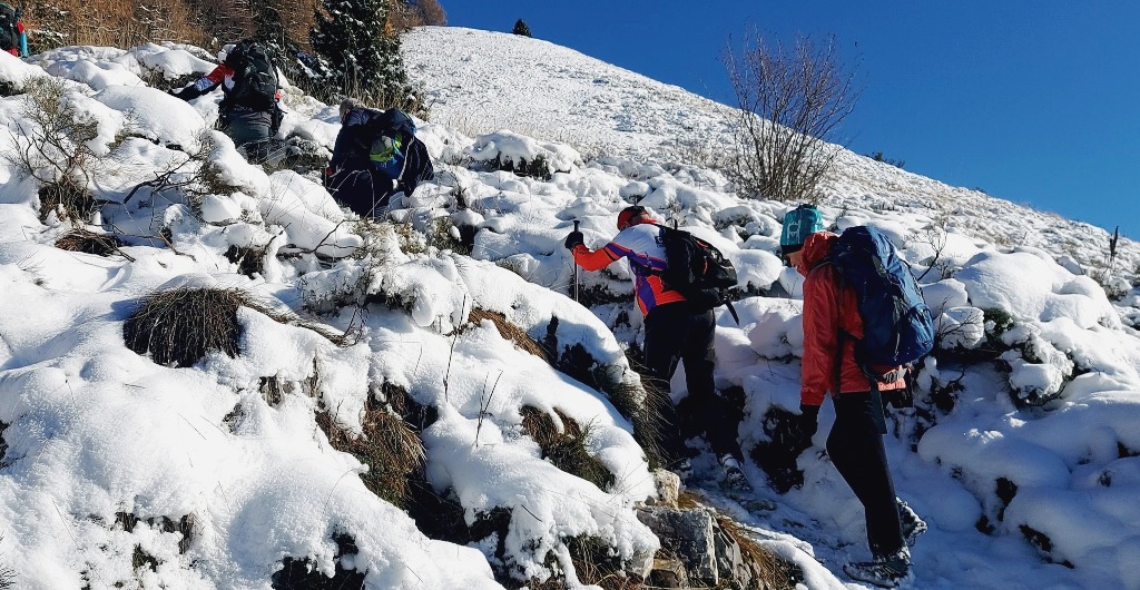23/11/2025. E' stata disputata oggi sull'Altopiano di Folgaria la 9ª ed ultima uscita del Programma Trekking 2025. L'itinerario previsto era un anello abbastanza breve (9 km) caratterizzato dal passaggio nel sito storico della Forra del Lupo, una lunga sequenza di trincee austroungariche affacciate sulla Val Terragnolo, alcune delle quali ricavate dentro stretti passaggi naturali fra le rocce. Nelle previsioni doveva essere un'uscita caratterizzata dai mille colori del bosco, in veste autunnale, ma la neve caduta nei giorni precedenti ha letteralmente trasformato il paesaggio, cosicchè - oggi - si è celebrato l'ideale passaggio di testimone fra la stagione estivo-autunnale (che se ne va) e quella invernale, che comincia sotto i migliori auspici !.