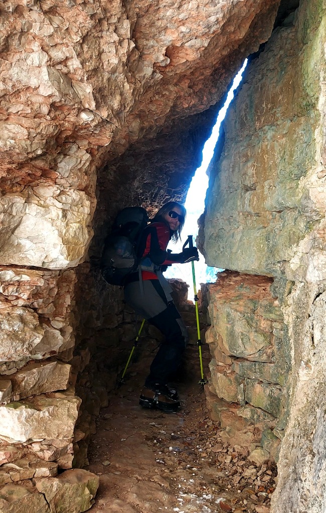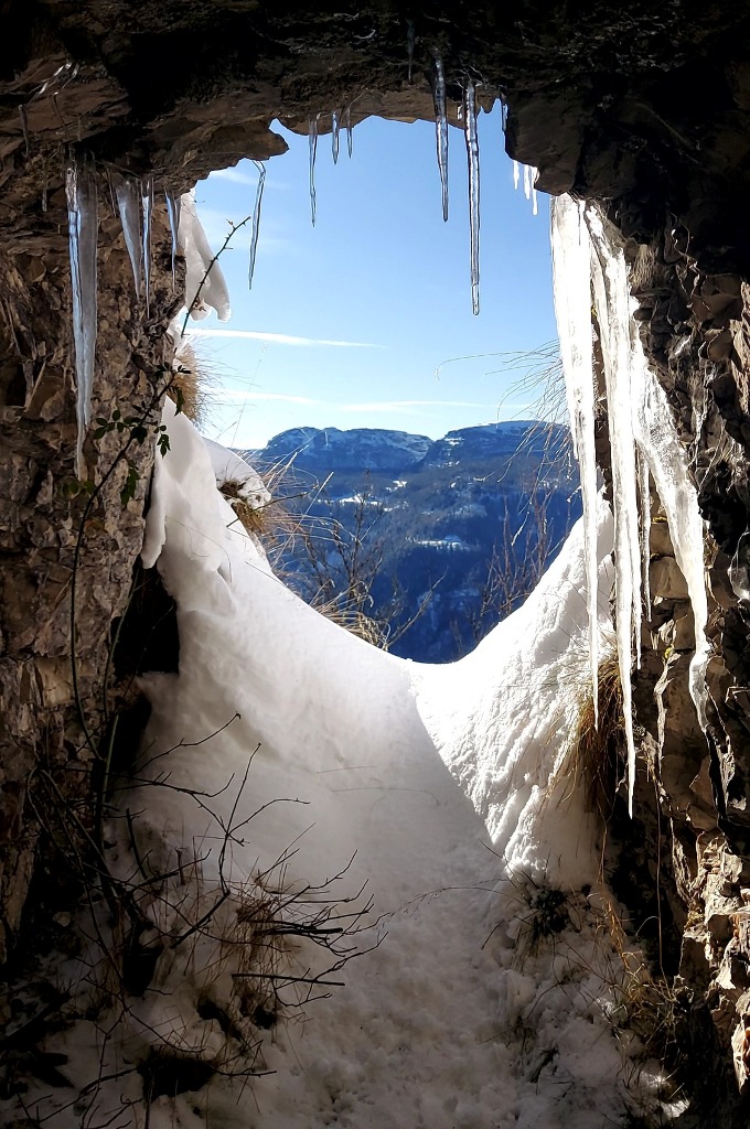 E' stato anche attraversato il "Tunnel dei fucilieri", con le sue strette aperture da cui sporgevano le canne delle mitragliatrici, puntate verso il fondo valle.