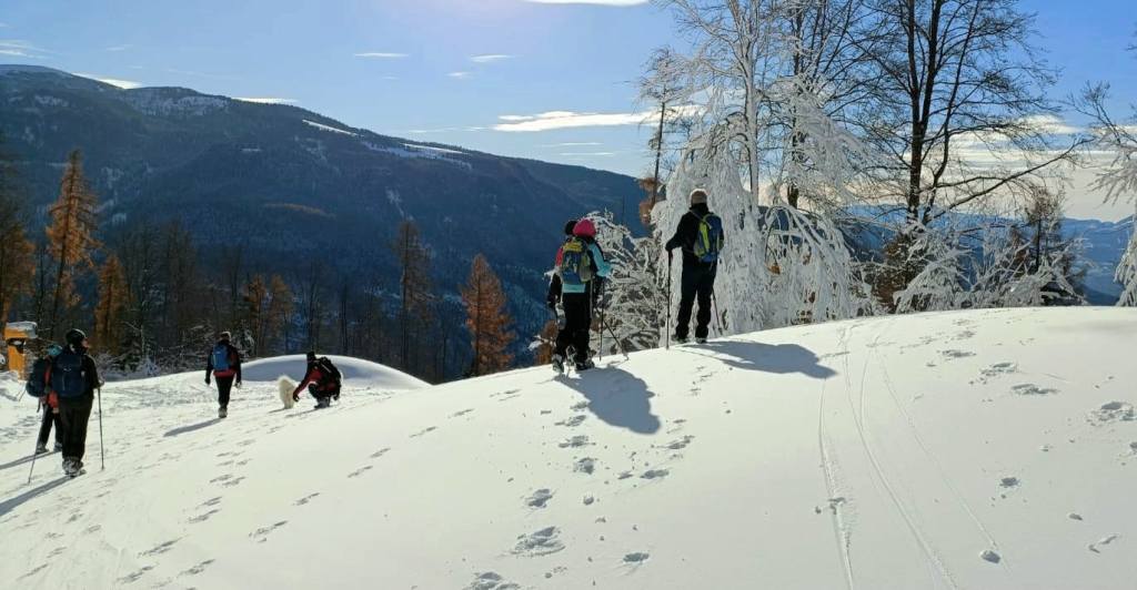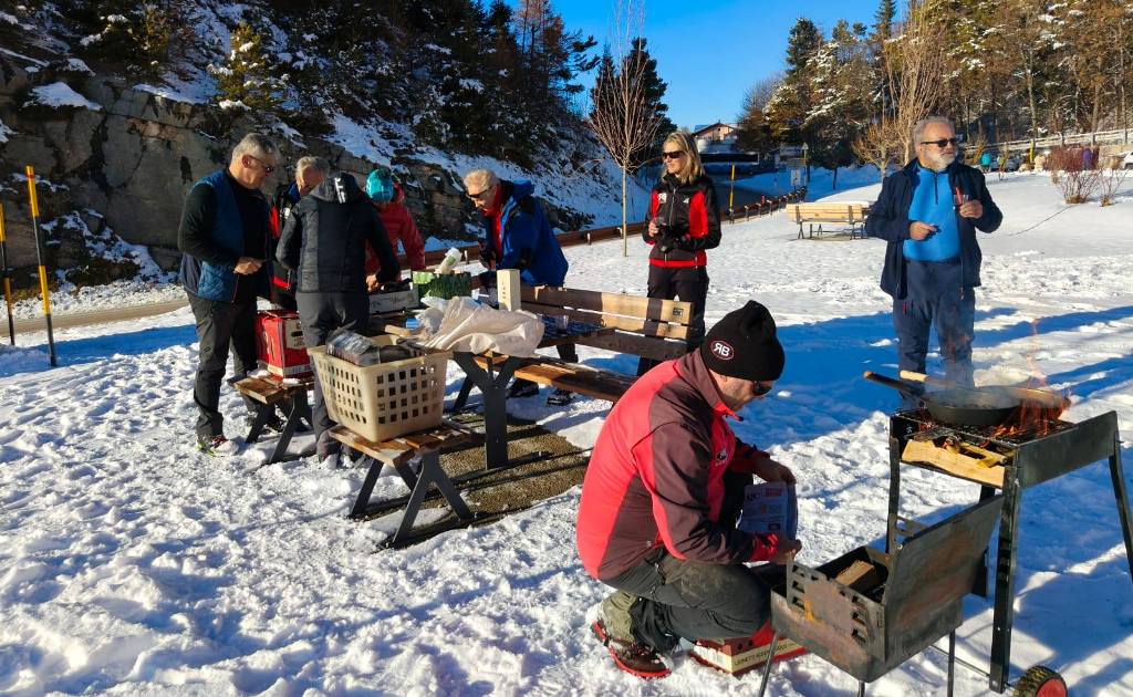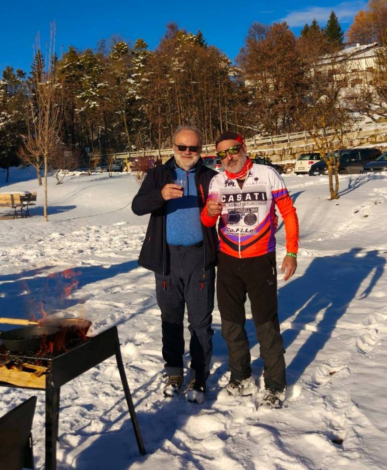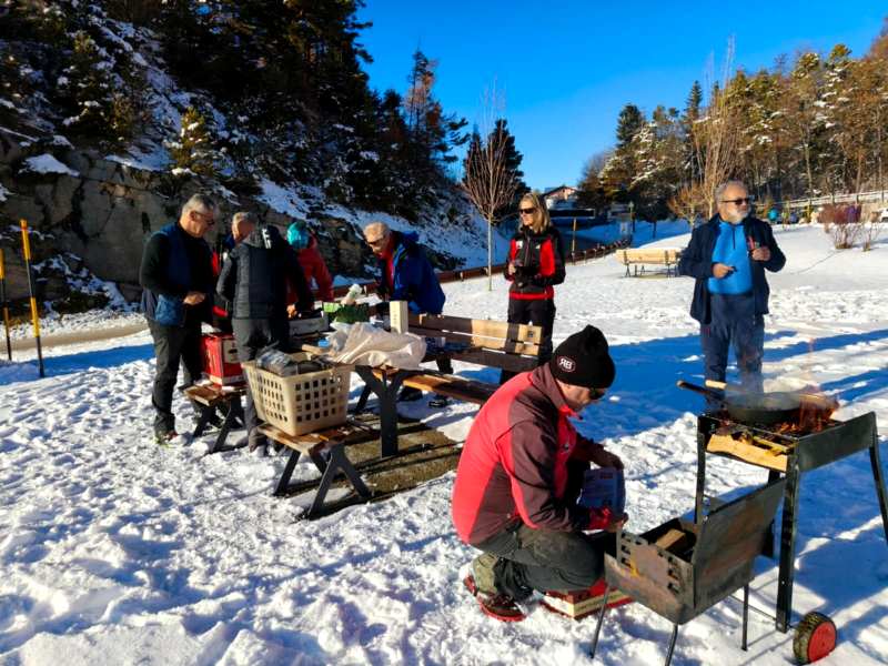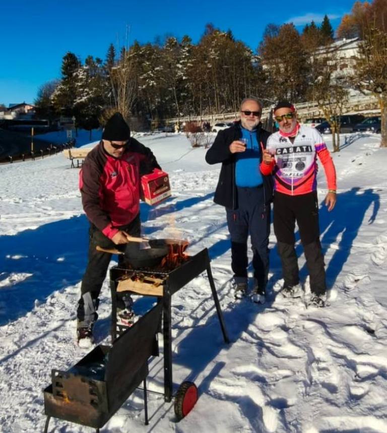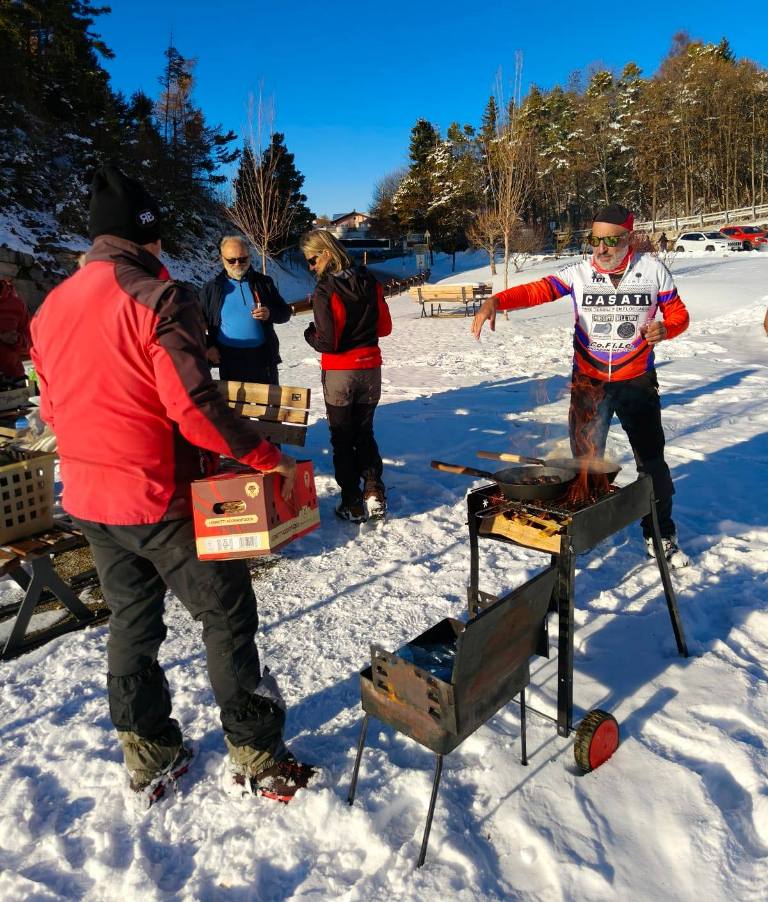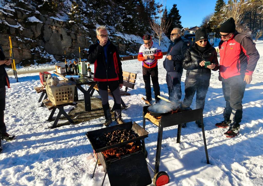 fine stagione nella neve ALLA FORRA DEL LUPO IL "PASSAGGIO DI TESTIMONE" FRA STAGIONE ESTIVO-AUTUNNALE E STAGIONE INVERNALE, CON L'ULTIMO TREKKING DEL PROGRAMMA 2025 DISPUTATO IN UN PAESAGGIO IMBIANCATO ! Disputata oggi sull'Altopiano di Folgaria la 9ª ed ultima uscita ufficiale del Programma Trekking 2025. Un'uscita, sul bell'itinerario della Forra del Lupo, che nelle previsioni doveva essere caratterizzata dai colori sgargianti dell'autunno e che invece, dopo le nevicate dei giorni scorsi, è andata in scena in un paesaggio decisamente invernale. E a fine giro, per tutti i 13 trekker presenti oggi, è stata allestita la tradizionale castagnata (con vino novello), in un'area picnic di Serrada. |