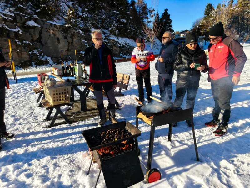 Dopo la camminata, in un'area attrezzata poco più a valle del parcheggio, è stato acceso il fuoco e sono state cotte le castagne, mangiate assieme ad un bicchiere di fresco Vino Novello. E' stata così trascorsa una piacevole oretta in compagnia, per poi riprendere la via di casa ...