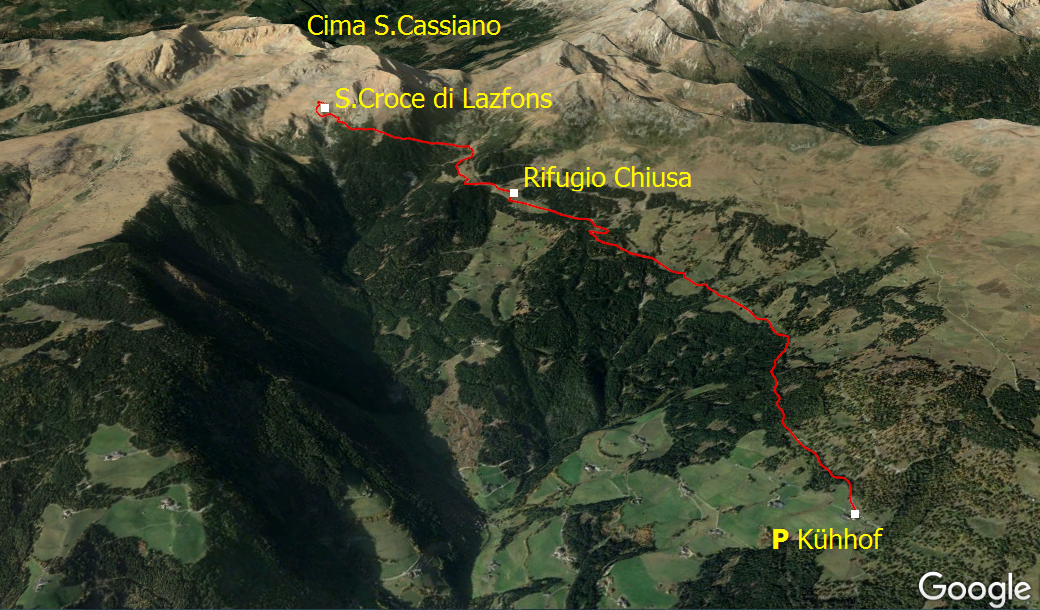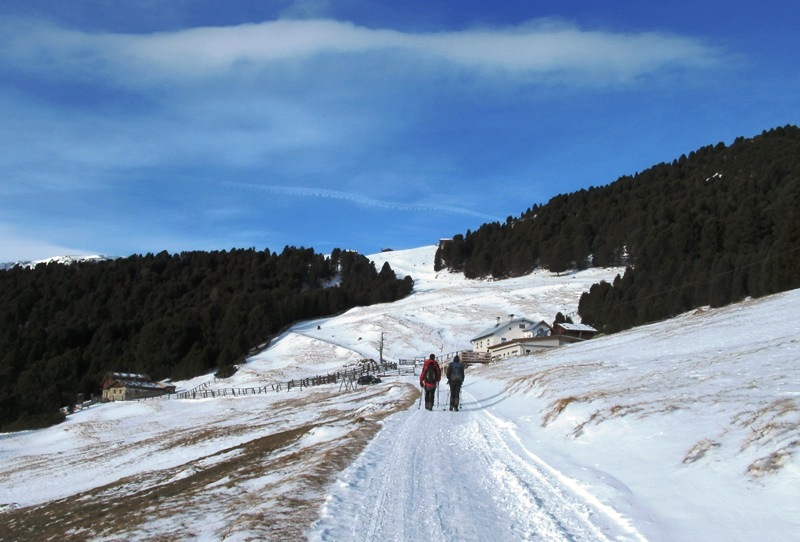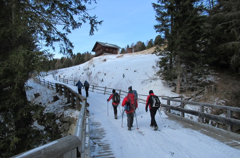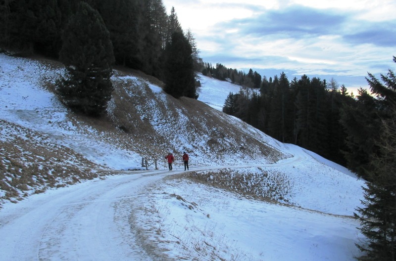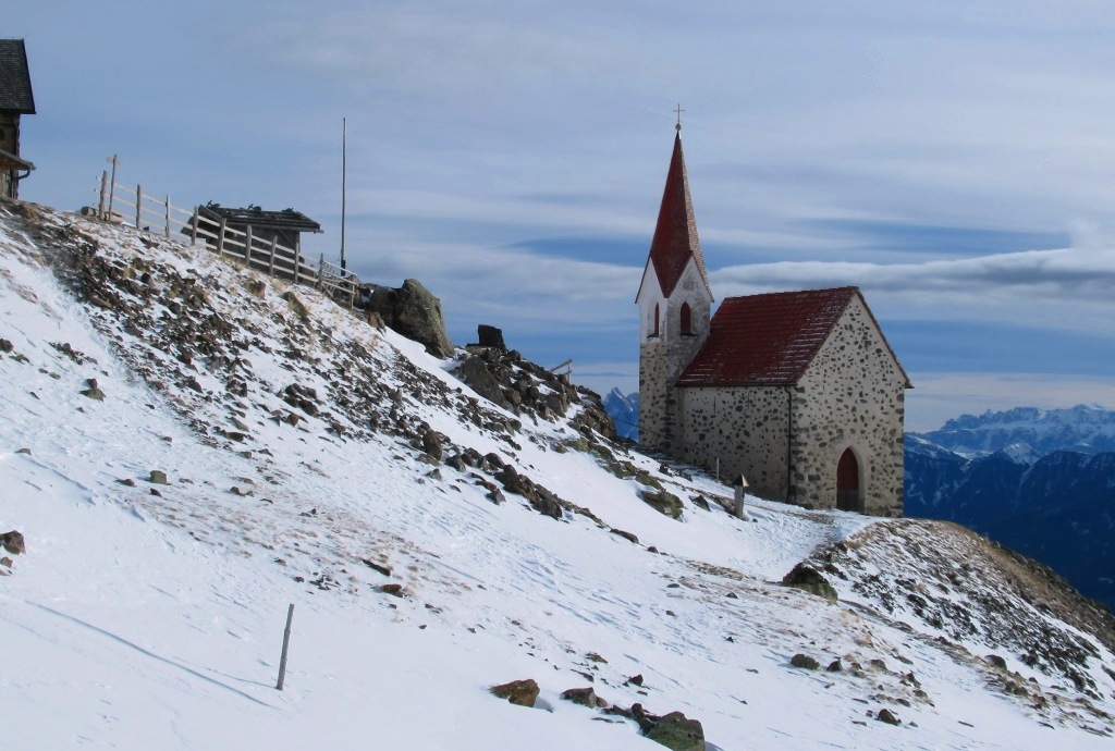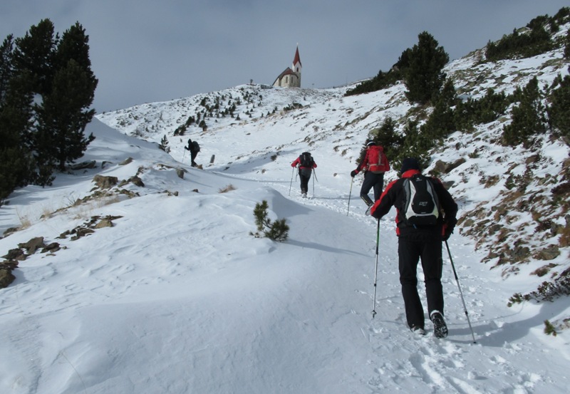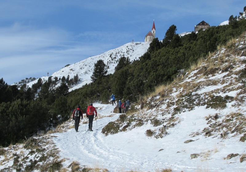 descrizione Partenza dal parcheggio in loc. Kulhof (m.1574). Da lì, imboccato il sentiero n.1 (in Alto Adige la numerazione non è unica provinciale, come in Trentino, ma ogni distretto turistico ha la sua, ndr), si salirà gradualmente, su comoda strada forestale innevata, fino ad arrivare - dopo 3,7 km - ai 1920 metri del Rifugio Chiusa. Dopo il rifugio si proseguirà sulla strada "Lazfonserkreuz", inizialmente con un ripido strappo, poi - dopo un paio di belle baite in legno e pietra - in falsopiano, entrando nella valle del Rio San Cassiano. Dopo il passaggio del rio, la salita riprenderà per l'ultimo km e mezzo, con il micidiale rampone finale che porta al santuario, a quota 2311. Rientro lungo la stessa via. |