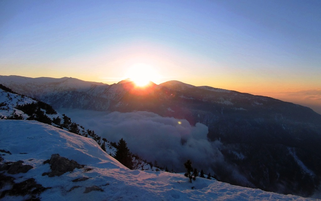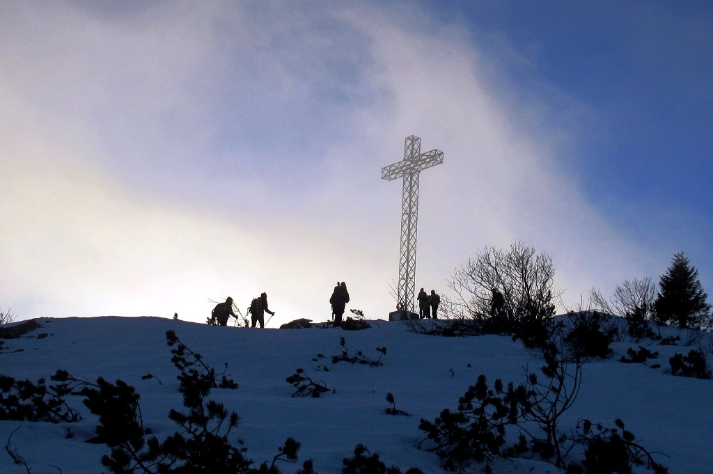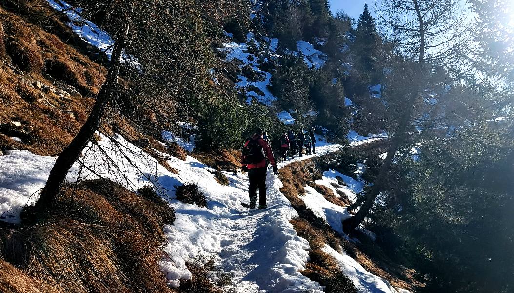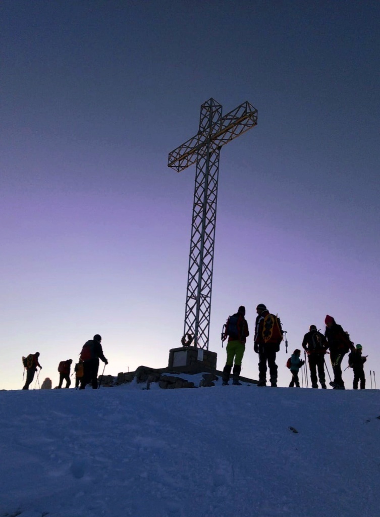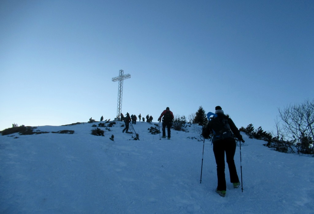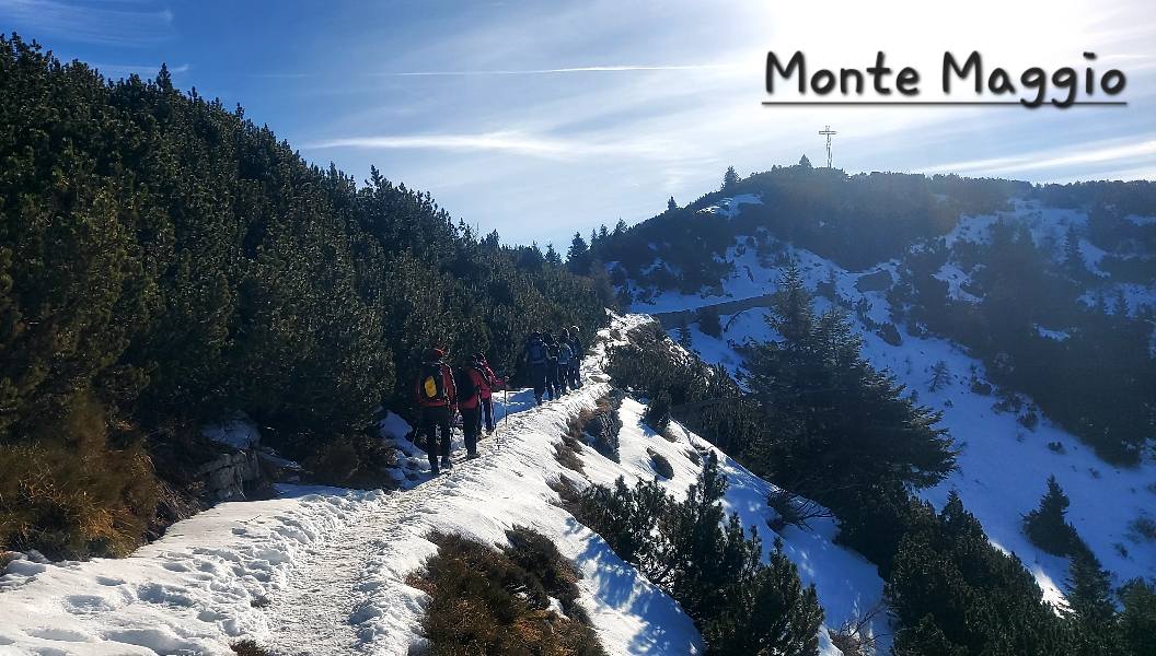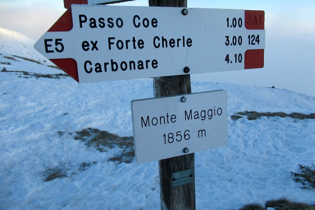 descrizione Tracciato di circa 8 km, con partenza da passo Coe (m.1610). Saliti fino al Cengio Rosso, si imboccherà il Sentiero della pace (realizzato sulle vecchie mulattiere della "Grande Guerra"), e si proseguirà sul versante della Val di Terragnolo (ovest), passando dietro al Monte Maronia. Giunti al bivio a quota 1660, si valuteranno le condizioni del sentiero. Se ci sarà poca neve ed il fondo sarà già battuto, si proseguirà, altrimenti si tornerà sul versante est che guarda alla conca di Passo Coe e si proseguirà la salita da lì (le due opzioni si riuniscono a qualche centinaio di metri dalla cima, poichè il Sentiero della Pace, nell'ultimo tratto, è troppo esposto e verrà comunque evitato). Giunti in vetta, si godrà del tramonto, poi inizierà la discesa, tutta sul versante est (Passo Coe), rientrando alla conca dove si trova il centro del fondo. A seguire, cena sociale presso l'Osteria Coe (quota 20 euro):